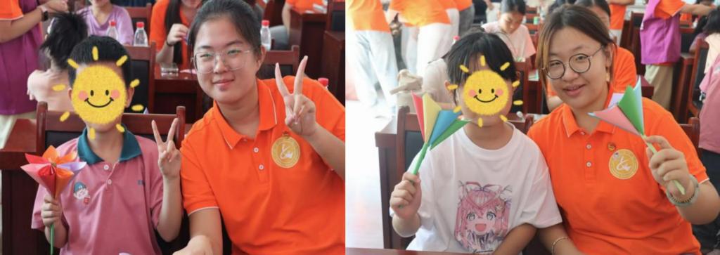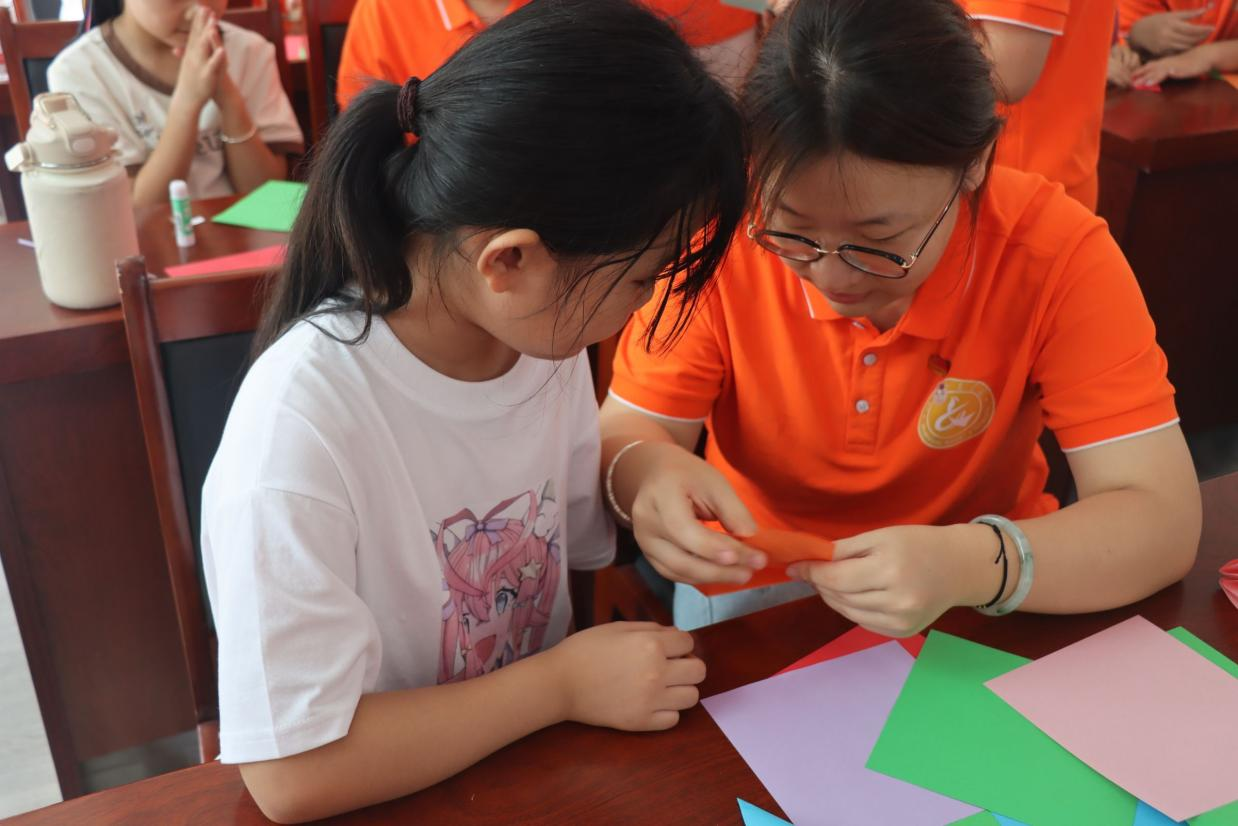 “指尖春韵”纸花制作活动中,孩子们在志愿者的适时协助下,体验折纸艺术的乐趣。这项以简单材料塑造立体造型的手工,不仅锻炼孩子们的动手能力、空间想象力与专注力,更培养其耐心与细致,从最初的紧张到创作的欢愉,孩子们也在炎炎夏日里让梦想随纸花绽放。
