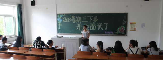 所有报名参加社会实践的大一同学都早早来到教室外候场,她们神采奕奕,积极准备,力求顺利通过。面试工作分为自我介绍和评委提问两个环节,评委们在仔细听取面试同学的自我介绍后,因人而异提出问题来考察她们对社会实践的认识。同学们从容自信,对所提出的问题认真作答,表示一定会展现自己的良好形象,利用自身优势,确保圆满完成实践活动。同学们的言谈举止中流露出挑战自我的勇气和对暑期“三下乡”活动的热忱与渴望。经过几个小时的面试,同学们都展示出了自我风采,面试工作圆满结束。
