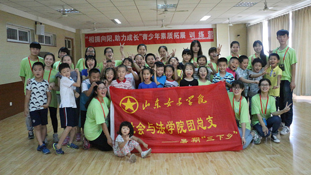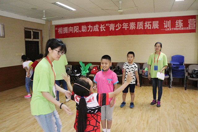 7月21日,社会与法学院“向日葵”志愿服务队二队联合女院爱家社会工作服务中心在山东女子学院儿童青少年素质拓展中心开展了以“团结合作”为主题的青少年素质拓展训练营第三期活动。