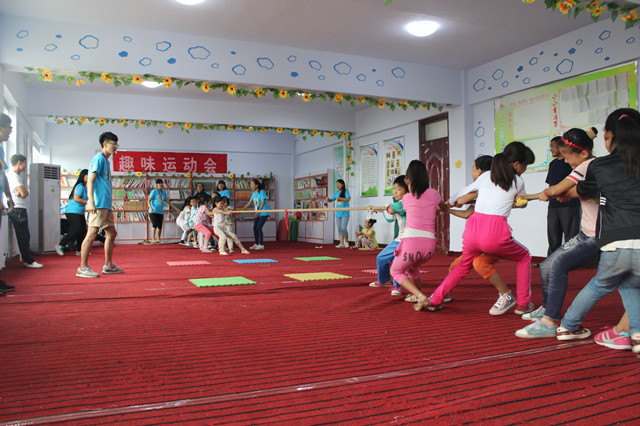 在一个组织中,合作显得尤为重要,为了让临沭尚学堂的孩子们增强合作意识,在集体生活中学会团结合作,“向日葵”志愿服务队利用社会工作专业知识为孩子们设计了“合作”主题活动。包括“滚车轮”、“叠高塔”等游戏,孩子们积极参与团队,每一个人都很投入,充分领悟了合作的重要性。在活动的分享交流环节中,孩子们学会了主动分享自己的感悟,说出在游戏中的体会和想法,也能够找出在活动过程中的优点与不足,使“向日葵”队员们看到了孩子们的进步。下午举行的趣味运动会,包括“两人三足”、“拔河比赛”、“背夹球”等环节,这些活动在增强孩子们的合作意识的同时,也能帮助孩子们树立运动意识,使孩子们积极投入到健康向上的运动中去,增强体质,加强锻炼。