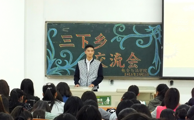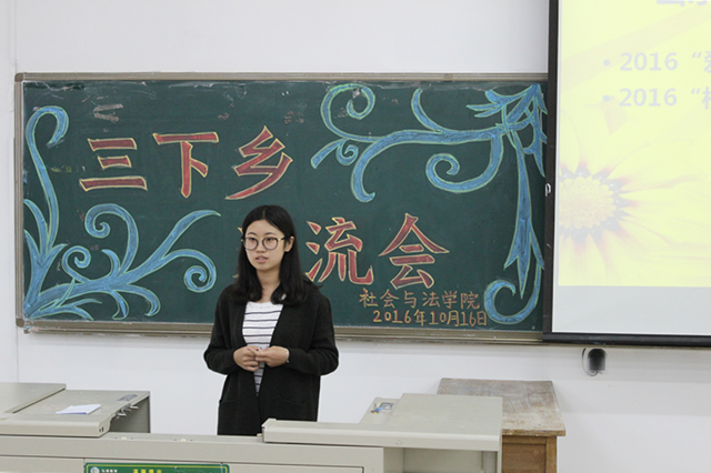 10月16日晚,社会与法学院在博文楼208举办暑期“三下乡”社会实践分享交流会。社会与法学院“向日葵”志愿服务队的队员及全体2016级新生参加了此次活动。