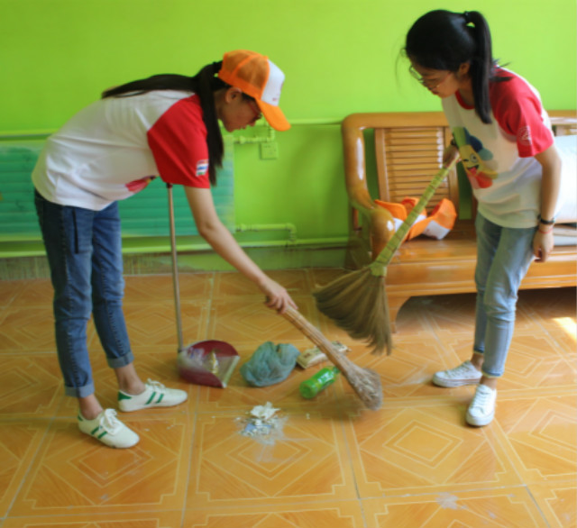在指导老师的带领下,“向日葵”志愿服务队顺利到达了小张村并与机构的工作人员进行了工作对接。指导老师与机构人员进行了简单的沟通交流,在进一步了解了机构的基本情况后开展了小型会议。指导老师在会上强调了安全、纪律、活动开展等相关问题,鼓励队员坚持不懈、劳逸结合,同时表达了对队员的期盼与祝愿,队员们也纷纷做出不忘初心、努力前行的承诺。会议结束后,队员们全身心的投入到活动前期的准备工作之中,完成了清点物资、打扫活动室、组装物品柜等工作,并进行了小组活动的情景模拟训练,队长指出了其中的不足与可借鉴之处,为未来几天活动的顺利开展提供了保障。