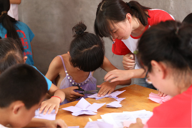 队员们运用社工的专业小组的技巧,用寓教于乐的方式来帮助农村儿童在游戏中获得成长,在活动中提升逻辑思考能力。在课业辅导后,“向日葵”志愿服务队队员们带领着孩子们开展了 “雷阵图”“急速六十秒”等游戏,孩子们在团队竞争积极为同伴们开辟安全的道路。奋力为团队的荣誉争光添彩。队员们开设太空泥、手语舞、手工制作等各种各样的兴趣小组,充分满足了孩子们不同兴趣的需要,培养提升了孩子们的动手能力、肢体表达能力。