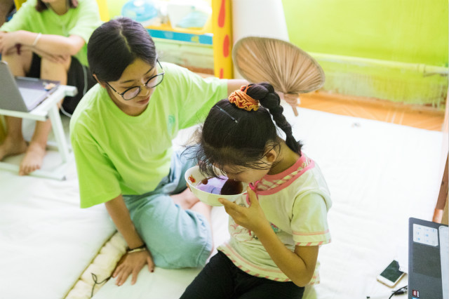 身体运动智能包括特殊的身体技巧,如平衡、协调、敏捷、力量、弹性和速度以及由触觉所引起的能力等。在日常的课业辅导时间过后,队员们带领孩子玩起了“坐地起身”、“螃蟹背西瓜”、“争分夺秒”等户外运动游戏,锻炼了孩子们运用整个身体来表达思想和情感、灵巧地运用双手制作、操纵物体的能力。运动会期间,由于天气炎热,有孩子出现了头晕等身体不适的状况,队员们及时将其带往活动室,为其扇风并送上清凉解暑的绿豆汤,及时有效地减缓了孩子的症状。队员们处理突发状况时的应变能力,也得到了家长的大力认同。家长们纷纷表示,自己将孩子送到这里学习、玩耍,让孩子遇到这么认真负责的老师,是一个明智的决定。