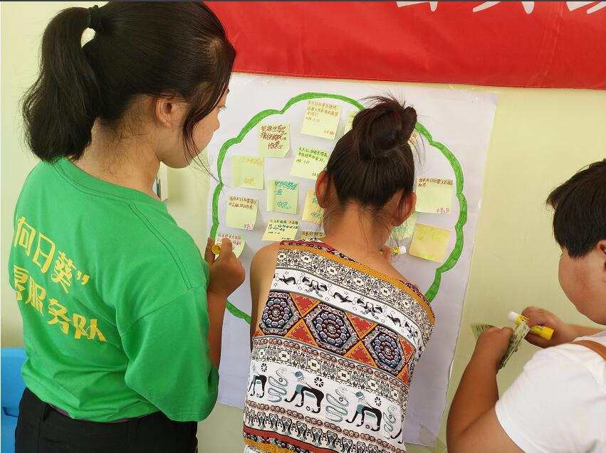 2018年7月12日,社会与法学院“向日葵”志愿服务队在济南市长清区孝里镇马庄村“童善”儿童关爱中心活动室带领农村留守儿童开展了自我认知智能活动,同时前往周边村庄进行走访调研工作。