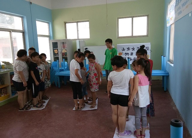 2018年7月15日,社会与法学院“向日葵”志愿服务队在济南市长清区孝里镇马庄村“童善”儿童关爱中心活动室带领农村留守儿童开展了身体运动智能活动,增强农村留守儿童身体运动方面的发展。