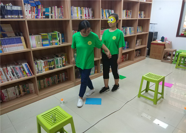 热身活动“松鼠与松树”游戏的口令一下,小朋友迅速跑动起来寻找接下来自己的位置,欢快的氛围把小朋友们从刚来的不适中带到了游戏中,带起了全场的气氛。随后进行的“生命线”游戏让小朋友们在不说话的情况下按年龄大小排队,活动起来的小朋友们想说话又努力忍着不说话的样子让志愿者们忍俊不禁。志愿者纷纷表示小朋友的天真烂漫带给他们了许多欢乐。短暂的休息后,志愿者们向小朋友们介绍了游戏“盲行”的规则,在志愿者的引导下,小朋友们一起体验了做盲人的感觉,在他人的指导下跨越重重障碍。最后一个游戏抢凳子的活动将活动室内的气氛推向了高潮,小朋友们跑着、跳着、笑着、闹着,活动室内欢乐不断,笑声连连,活动整体进展十分顺利。