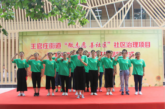 随后,社会与法学院党总支书记张莹、区委组织部副部长刘柏共同为山东女子学院大学生实践基地进行揭牌。揭牌过后,社会与法学院“向日葵”志愿服务队三队的队长带领全体志愿者面对社区的居民进行了志愿服务宣誓。本次仪式在志愿者们坚定的宣誓声中划上了圆满的句点。