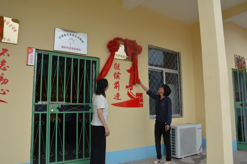 2019年7月11日,山东女子学院社会与法学院在山东省淄博市沂源县东里镇东河南村举行了“山东女子学院大学生社会实践基地”揭牌仪式,东河南村村委干部、社会与法学院党总支副书记赵晓琳、团总支书记方莹、老师王晴晴以及全体“向日葵”志愿服务队队员参与了此次仪式。