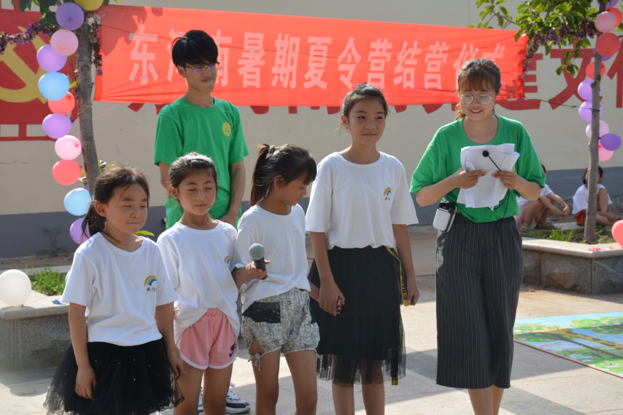 7月19日,山东女子学院”向日葵”志愿服务队在淄博市沂源县东里镇东河南村举办了暑期“三下乡”社会实践活动之“心理资本筑乡梦,童心齐聚东河南”儿童成长夏令营结营仪式暨文艺汇演活动。