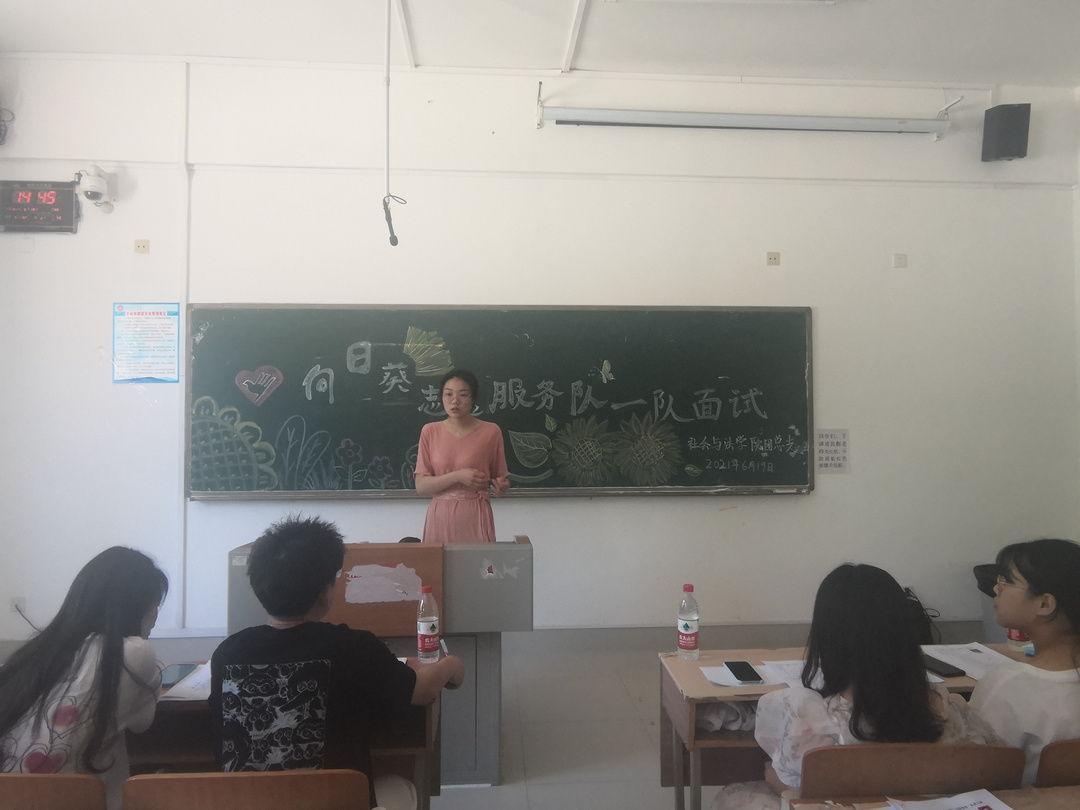 为深入学习贯彻习近平新时代中国特色社会主义思想,结合“学党史、强信念、跟党走”党史学习教育部署,坚持“暑假实践与日常志愿服务相统一、专业实践与学科竞赛相统一、协同育人与服务地方经济社会发展相统一”的原则,以实际行动庆祝中国共产党成立100周年,“向日葵”志愿服务一队的面试即将开始。
