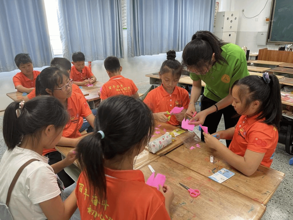 七月如火,岁月如歌。围坐成圈,大手拉小手。愉快的笑声幻作了青春岁月的音符,谱写了一首动听的乐章。童心向党,印有建党百年标志,一件件代表活力的橙色衣服。志愿者们为孩子们分发了衣服,小朋友们已经迫不及待地拆开衣服袋穿上试试。