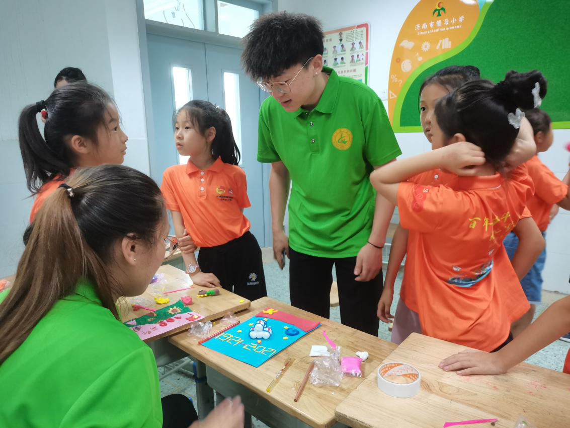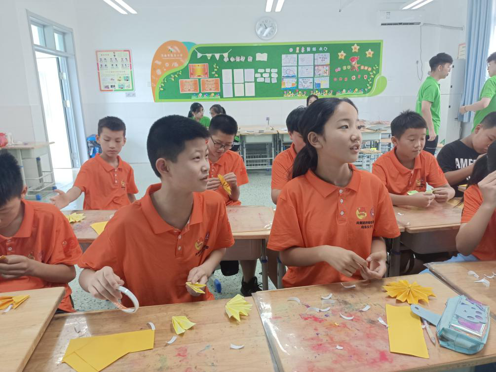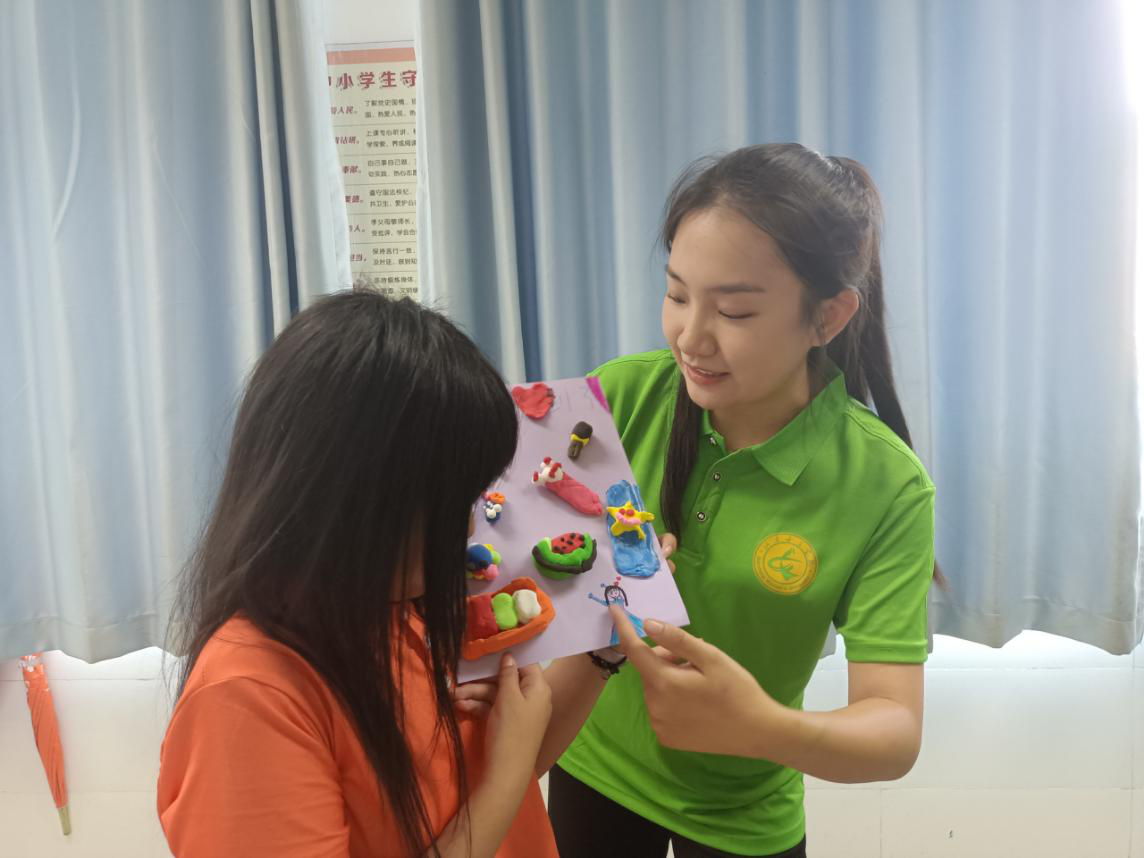 经过昨天的相处,向日葵志愿服务一队的“小向日葵们”已经对小朋友们的情况有了初步的了解。于是,以内容多样的手工艺展开活动,通过类型繁多、外观优美的艺术作品率先唤醒小朋友心中的艺术素养,提高小朋友的参与度,为后续各种文化的唤醒提供了基础。