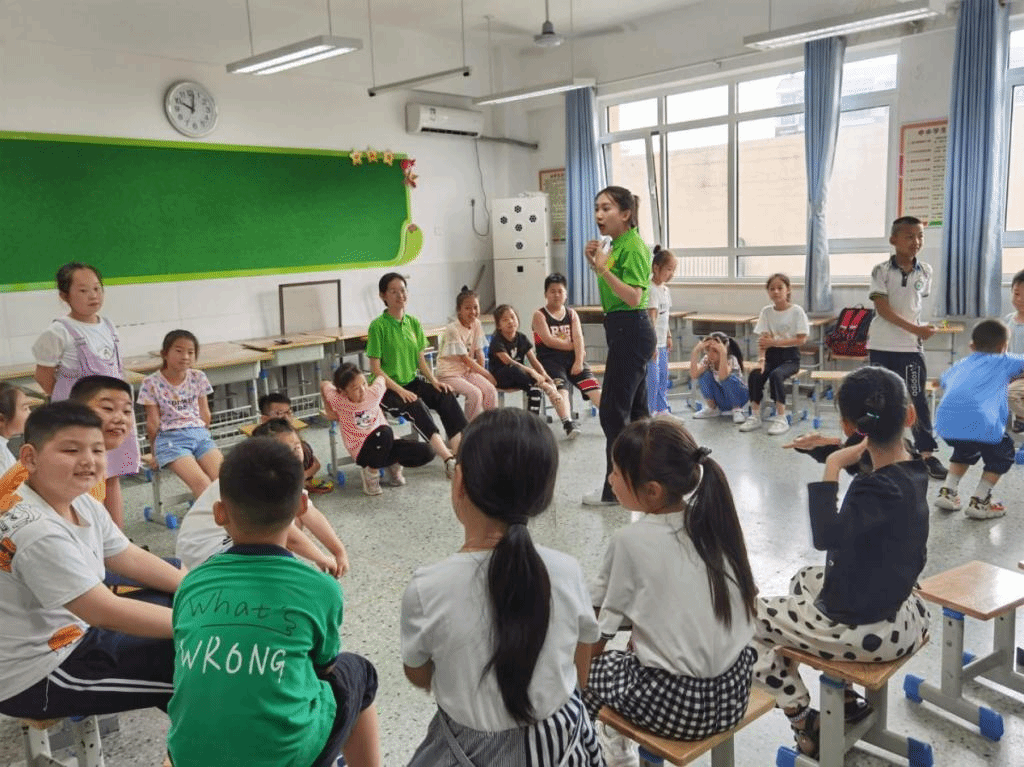 课间期间,孩子们在自己的座位上与小伙伴分享着破冰游戏的经历与体验,并主动与志愿者们交流着,其中有一个孩子带着笑容问道:“大哥哥,你的家在哪里”,“哥哥的家离这里较远”一次偶然的回答道,孩子惊奇并关心的问道:“那大哥哥肯定非常想念爸爸妈妈”听了孩子的这番话,心底里更是波荡起伏感慨万分。通过后面的交流得知这个孩子是个留守儿童,爸爸妈妈在外打工,自己和爷爷奶奶一起生活,通过几次游戏,发现这个孩子更是积极热心帮助别人。孩子们拥有简单的快乐就好像拥有了全世界,缘分让“向日葵”志愿者与孩子们相遇,通过此次见面,为志愿者和孩子们的旅程扬起了船帆。