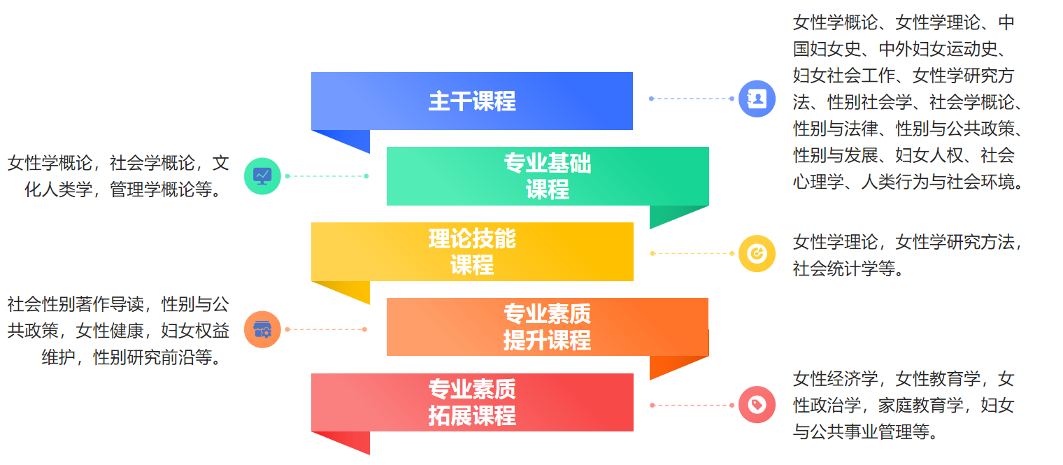 本专业立足学校女性教育和女性研究特色,聚焦服务妇女儿童事业发展的复合型人才培养目标,着力强化学生“四自”精神、社会性别意识与国际视野培养,紧密对接新时代社会发展需求与落实男女平等基本国策,为相关领域持续输送高素质应用型人才。