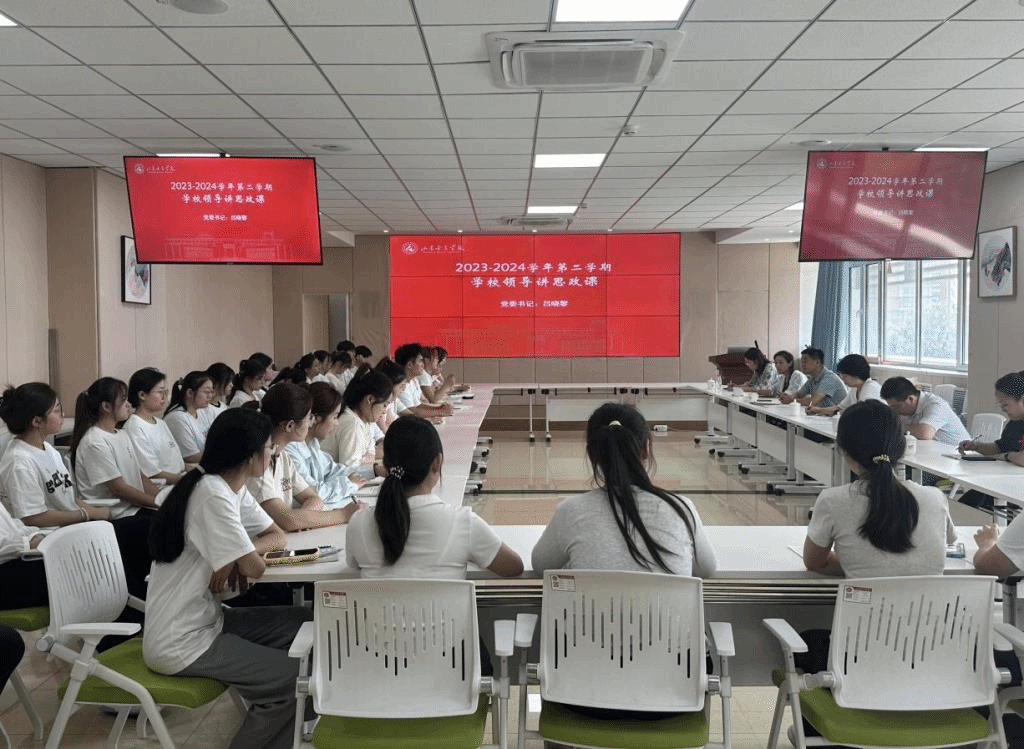 2024年6月25日下午,山东女子学院党委书记吕晓黎深入社会与法学院,以座谈会的形式,为健康服务与管理2302班的全体学生讲述了一堂精彩的思政课。活动由社会与法学院党委书记杨洋主持,健康服务与管理教研室主任赵娜、专业教师王文文、辅导员管蕊参加本次活动。