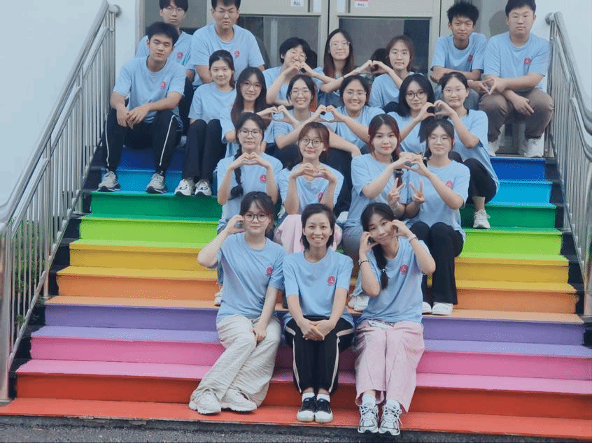 图为健康队队员们在福利院的彩虹楼梯上的合影。中国青年网通讯员刘文营供图