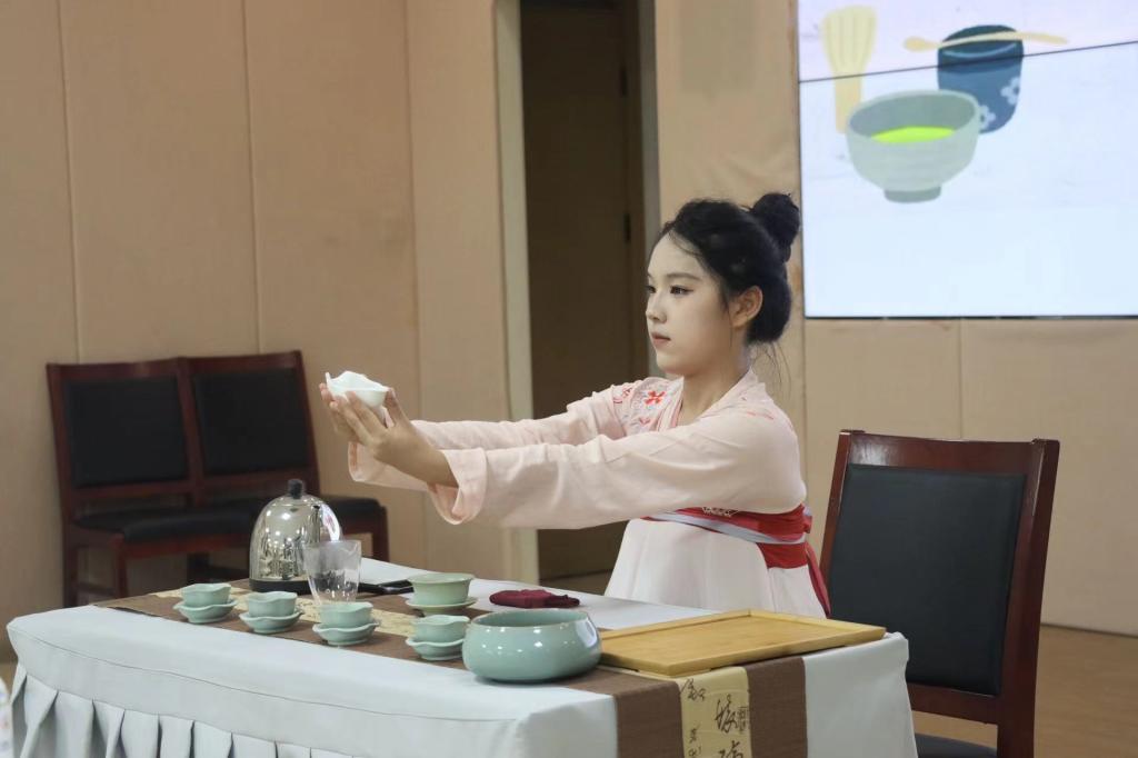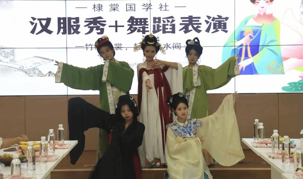 为激发爱国情怀,弘扬民族精神,茶话会上播放了爱国短片,师生们被短片中展现的爱国情怀所感染,学生们纷纷表示要铭记历史,珍惜当下,为祖国的繁荣富强贡献自己的力量。棣棠国学社呈现汉服走秀与舞蹈,养老精英协会展示音乐疗法,茶道艺术团则带来花茶盖碗茶艺表演,茶香与技艺共融,展现了中国传统文化之美。