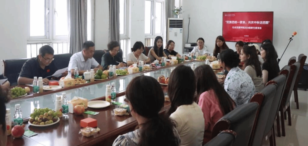 为铸牢中华民族共同体意识,推进中华优秀传统文化传承发展,深入开展民族团结进步宣传教育,促进各民族交往交流交融,9月17日中秋节,社会与法学院(社会发展学院)召开“民族团结一家亲,共庆中秋话团圆”新生座谈会。师生欢聚一堂,共享团圆,共庆佳节。山东女子学院党委委员、统战部部长李君、招生就业处处长吕慎敏、社会与法学院(社会发展学院)党委书记杨洋、副书记吴玉霞、辅导员贾心红以及来自不同民族的18名新生代表参加本次活动。