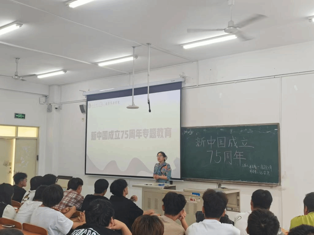 2024年9月26日,为庆祝中华人民共和国成立75周年,回顾国家发展历程,传承红色基因,强化爱国主义教育,激发青年学生的爱国情怀和民族自豪感。社会与法学院(健康养老学院)在求真楼610举办“庆祝新中国成立75周年”主题团日活动,本次团课活动由学院团总支书记张扬主讲。