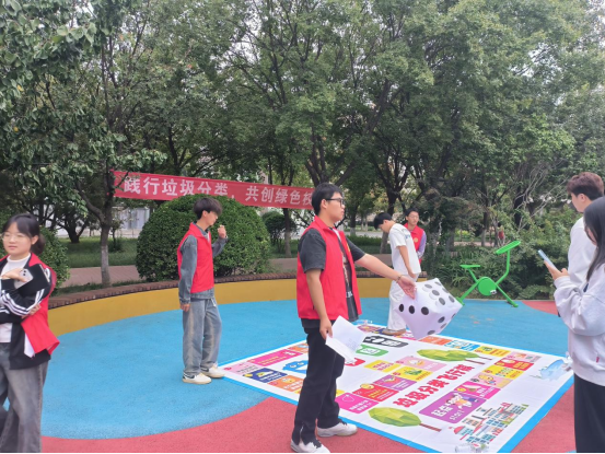 垃圾分类活动趣味运动会由后勤管理处(基建处)物业管理中心主任袁晶晔主持,刘丽介绍了垃圾分类辨别和回收处理的相关知识,以及分类比赛的规则。吴 博、周 朔、刘 丽、潘 慧分组带领参赛师生分别举行了垃圾分类飞行棋、投掷沙包、掷飞镖等运动。老师和同学们按学院组队参加了分类运动比赛,大家摩拳擦掌,跃跃欲试,互相激励,体现了团队合作的竞争精神,积极为学院赢得荣誉。