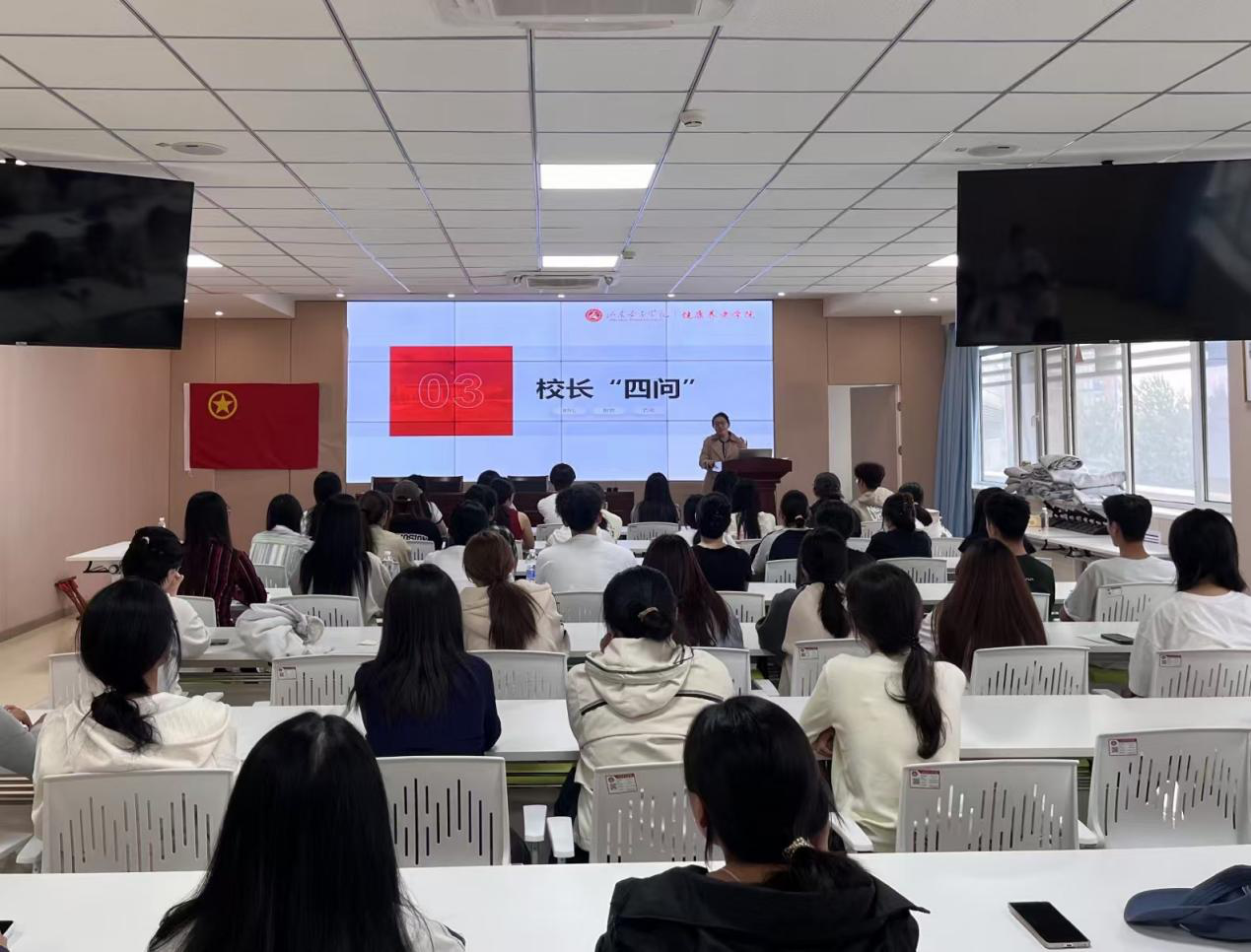“未来中国将以什么的气象呈现在世界面前?”“青年学生将以什么样的姿态呈现在时代面前?”“青年学生将以什么样的状态度过大学?”“青年学生将以什么样的心态成为一名全面发展的人?”9月20日,2024级新生开学典礼之际,山东女子学院校长李光红提出这直击青年灵魂的“四问”。校长“四问”在校园引起热烈反响,健康养老学院团总支开展主题团课,组织各团支部相继开展了回答校长”四问”主题团日讨论活动,学习、领会、贯彻校长“四问”精神。经过讨论,思考健康养老学院青年学生应该如何以奋进姿态面对时代要求并对校长“四问”做出了回答。