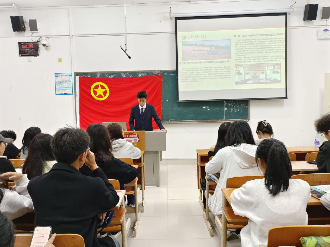 主题团课上,主讲人首先介绍了中国共产党在新时代伟大征程中做出的全方位且深远的贡献,并阐释了教育对国家和社会发展、推动社会进步的重要使命。接着,主讲人提出了“校长四问”,通过“校长四问”引导团员们深入思考个人成长、专业技能、社会责任和未来人生规划。最后,团员们进行小组讨论,用纸笔写出了他们对校长“四问”的理解和回答。