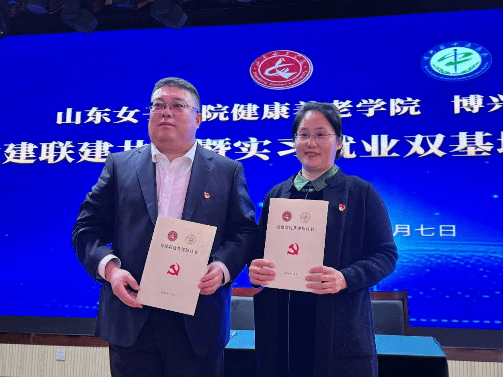为深入学习贯彻习近平新时代中国特色社会主义思想和二十届三中全会精神,充分发挥党建引领作用,11月7日,社会与法学院(健康养老学院)与博兴县中医医院举行党建联建共建暨实习就业双基地签约仪式。博兴县委常委、组织部部长黄广宪,县委常委、副县长、县委卫生健康工委书记范国龙,县委卫生健康工委常务副书记、县卫生健康局党组书记、局长李晓营,博兴县中医医院党委书记袁玉春,医院其他班子成员;山东女子学院合作发展处处长于子云,组织部副部长耿华及健康养老学院师生代表共45人参加此次仪式。