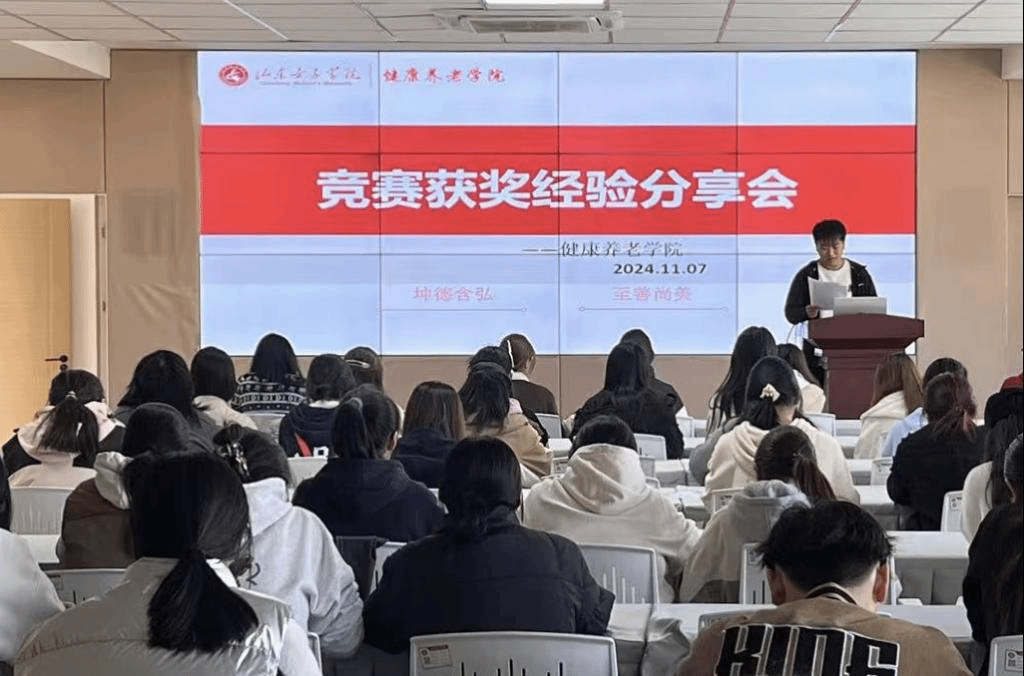 活动伊始,社会与法学院(健康养老学院)团总支书记张扬发表讲话,介绍了未来各项竞赛赛程、学院赛事规划和各项训练营,鼓励健康养老学院的同学们积极参与各项竞赛,不断题升自身素养,争取在赛事中取得好成绩,实现健康养老学院新突破。本次活动荣幸邀请到我院获得第十四届“挑战者杯”山东省大学生创业计划竞赛金奖的宋军熹及第二届全国大学生职业规划大赛山东赛区获奖者徐雪琪作为主讲嘉宾。宋军熹、徐雪琪从备赛策略、团队协作、作品构思与展示等多个方面进行了详细的讲解。他们不仅介绍了自己备赛过程中的经验教训,还深入剖析了竞赛中常见的难点与痛点,并给出了切实可行的解决方案。通过此次分享会,学生们不仅了解了竞赛的基本流程和关键环节,还掌握了更多实用的参赛技巧和方法。
