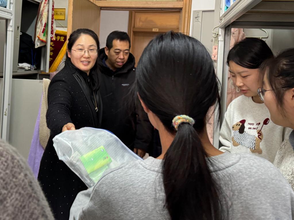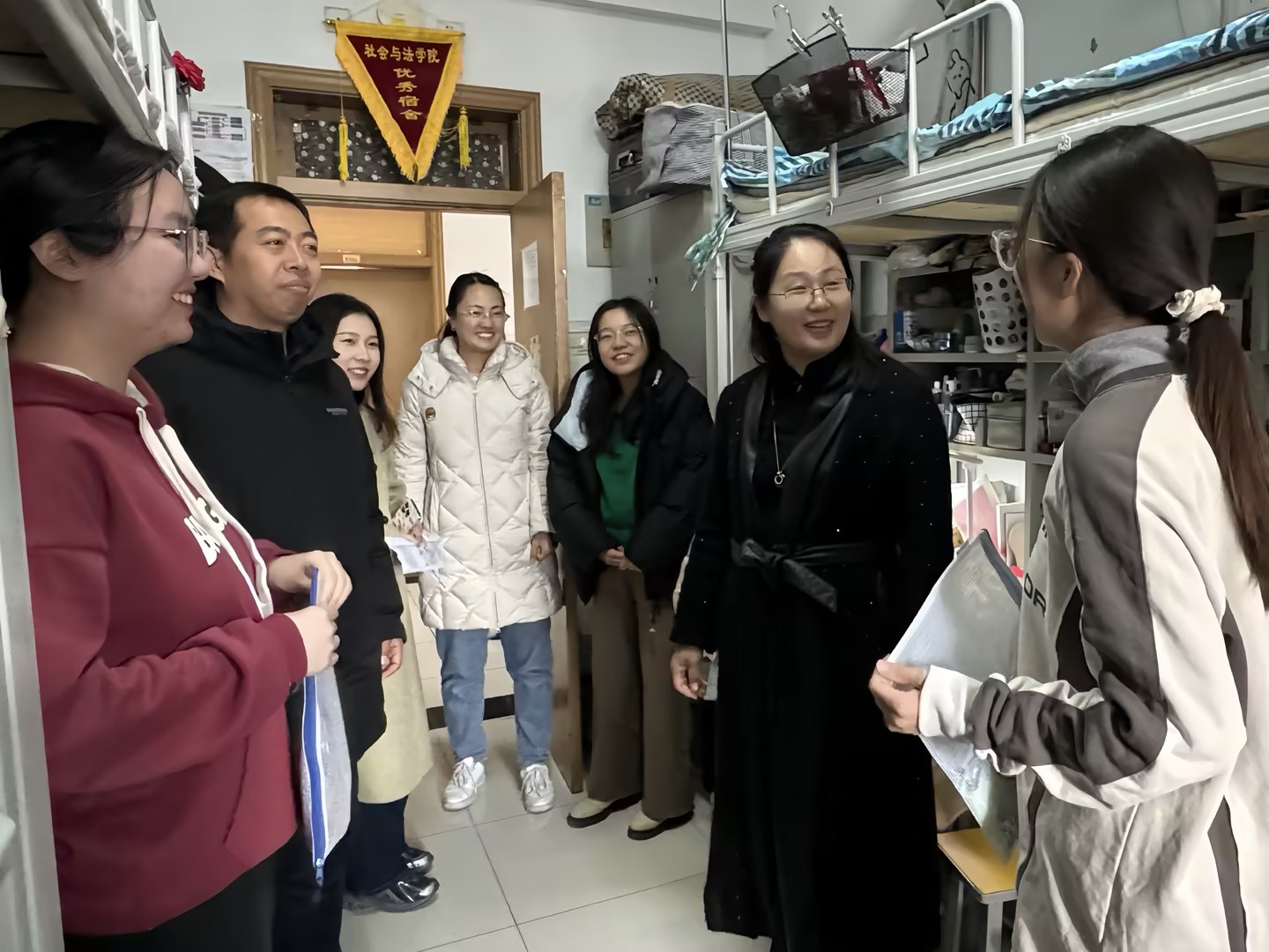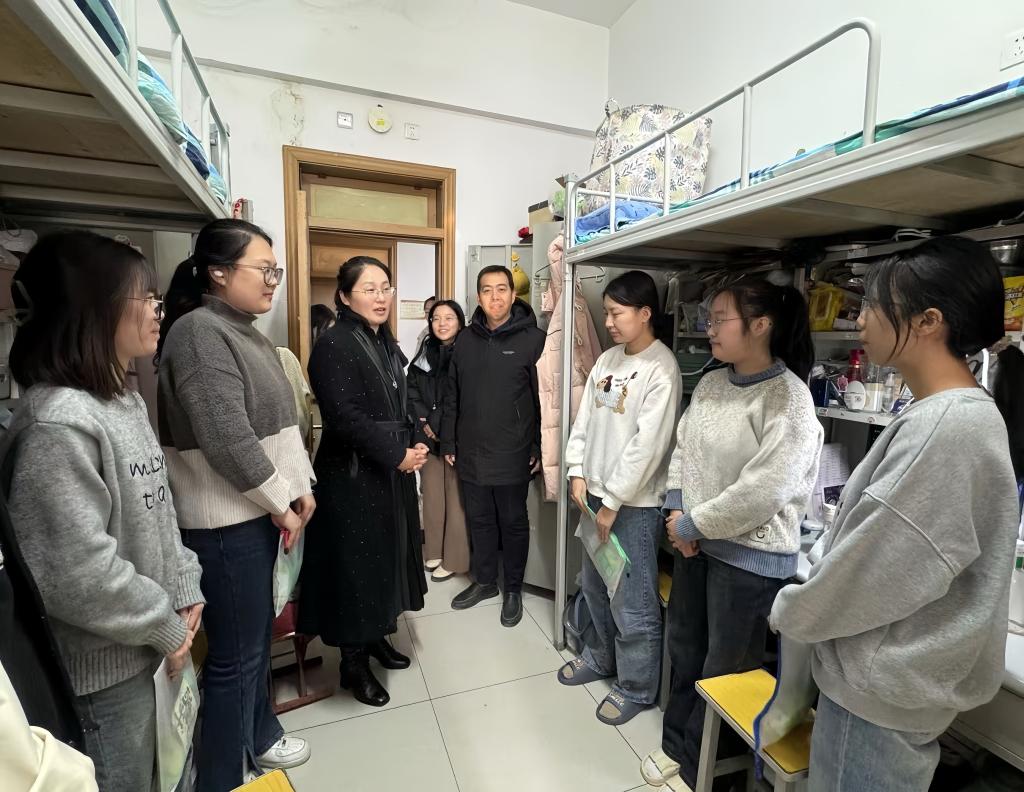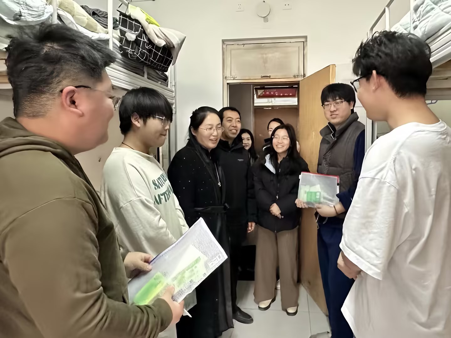 临近2025年全国硕士研究生招生考试,为给考研学子缓解备考压力,鼓舞士气,坚定信心,12月11日,健康养老学院党委书记赵丽丽、副书记陈涛,以及辅导员一行走访考研学生宿舍,送去温暖慰问。