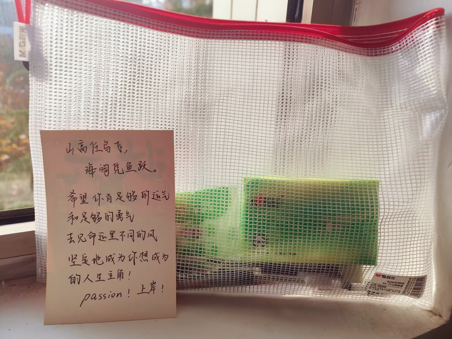 走访过程中,领导、老师们还为同学们送去了“考研大礼包”,里面既有考试用笔、橡皮、纸巾等实用物品,还装有记录着学院师生真情祝福的明信卡片。毕业班辅导员也表示会全力做好后勤保障工作,为同学们提供必要的支持和帮助。