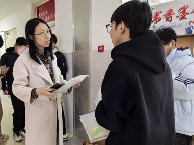 赵丽丽与考研学生进行了亲切的交谈,详细询问了他们的报考学校、备考进度、心理状态等情况,以及在备考过程中遇到的困难和问题。对同学们坚持不懈、积极进取的精神给予了充分的肯定,鼓励同学们要积极调整好心态,保持良好的作息和饮食习惯,以最好的精神状态迎接考试。