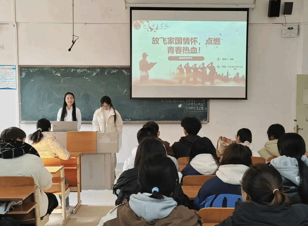 为积极响应国家关于高校在校生、毕业生入伍预征的决策部署,解答同学们在参军入伍方面的疑惑,激发广大青年学生的爱国情怀和报国之志,12月17日,健康养老学院在博学105室成功举办了一场以“青春献国防,热血铸军魂”为主题的征兵宣讲会。特邀请退役军人代表郭峰、陈彦丞进行征兵宣讲。健康养老学院辅导员于苗和部分学生代表参加本次活动。