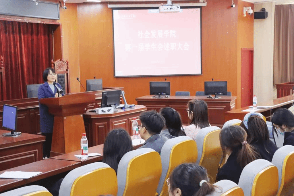 为全面落实共青团中央、教育部、全国学联印发的《关于推动高校学生会(研究生会)深化改革的若干意见》等文件精神,强化学生组织队伍管理,进一步促进学生组织工作制度化和规范化,发挥学生干部联系广大同学的桥梁和纽带作用,总结工作成果、反思工作不足、提高工作效率,社会发展学院近日开展了第一届学生会、自律会、就督会述职大会。社会发展学院党委副书记吴玉霞、全体辅导员出席本次会议。