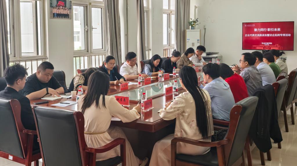 为深化校企合作、优化人才培养模式实践路径,助力毕业生高质量就业,4月17日上午,社会发展学院在博雅楼A503室隆重举办“聚力同行 职引未来”——企业代表交流座谈会暨访企拓岗专项活动。学院领导、教研室主任、多家知名企业的代表以及毕业生代表共聚一堂,共话产学研融合新路径,共谋协同育人新篇章。