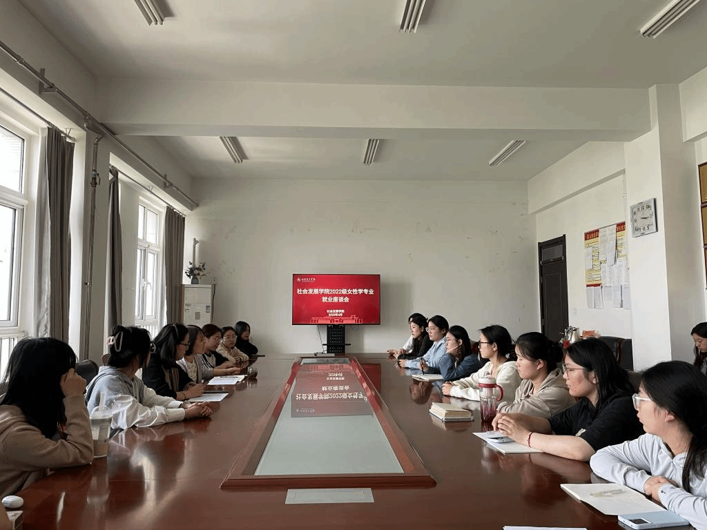 4 月 22 日下午,社会发展学院组织首批女性学专业学生于博雅楼 503 会议室开展就业意向调研座谈会。学院党委副书记吴玉霞、2022 级女性学专业辅导员刘汝婷与全体学生围绕个人发展规划展开深度交流。