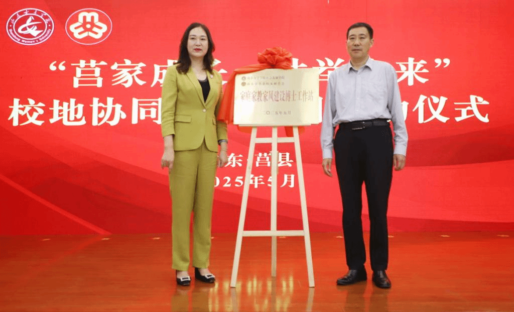 启动仪式上,学校合作发展处处长于子云与莒县县领导共同为山东女子学院“家庭家教家风博士工作站(莒县)” 揭牌。该工作站由学校专家团队牵头,聚焦家庭领域前沿问题,将开展家庭教育理论研究、指导师培训及实践创新,为莒县家庭建设提供常态化智力支撑。