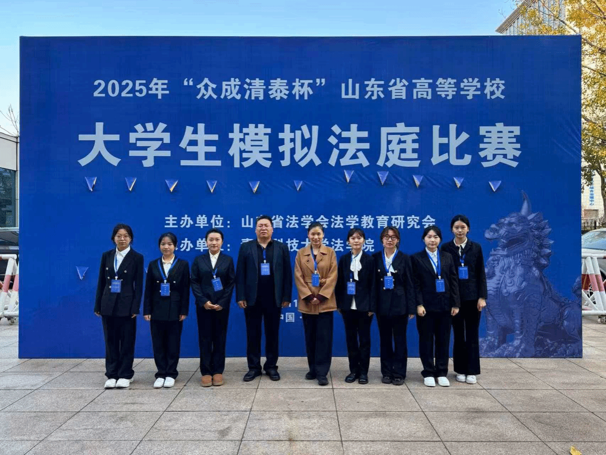 11月29-30日,2025年“众成清泰杯”山东省高等学校大学生模拟法庭比赛在青岛市崂山区人民法院顺利落幕。本次比赛由山东省法学会法学教育研究会主办、青岛科技大学法学院承办,吸引了全省多所高校法学及其相关专业队伍参赛,赛事贴近司法实务,成为各高校法学类专业实践锻炼的重要形式。我校参赛团队由社会发展学院许永成、尹蕾蕾两位老师带队,知识产权专业陈笛、杨敏、宫橙、杨祎凡、李晨旭、吕彦晓、高阳等七位同学作为参赛队员,团队凭借稳定发挥斩获省级团体三等奖,宫橙同学获评“优秀辩手”。