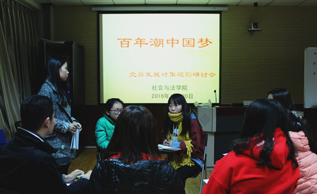 10月30日晚,社会与法学院学生党支部在求实楼504举办了“百年潮·中国梦”观影活动。社会与法学院学生发展对象参加了此次活动。