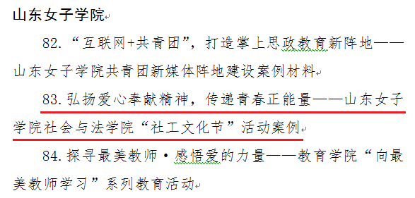 近日,由省委高校工委在2016年底组织开展的大学生思想政治教育优秀工作案例评选活动圆满结束,社会与法学院举办的“社工文化节”活动凭借其丰富的活动内容和充实的精神内涵成功入选。
