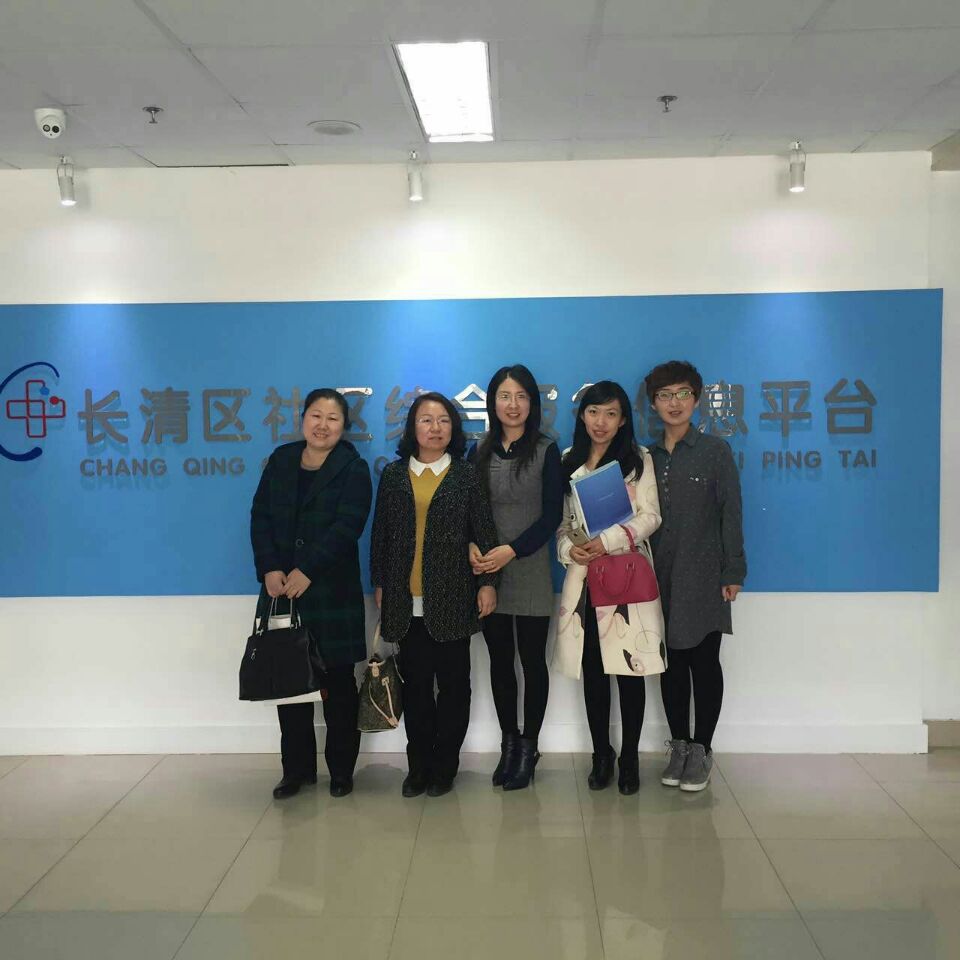安康通运营总监李建兰首先对闫院长一行的到来表示热烈欢迎,然后陪同参观了长清区社区综合服务信息平台,重点介绍了健康养老服务项目,随后双方进行了座谈。李总监进一步介绍了公司的基本概况和发展规划,并对寒假期间在公司参与实习工作的我院老年服务与管理专业学生的表现给予了充分肯定。闫小红副院长和金莉主任分别介绍了我院在社区治理和健康养老领域的研究以及老年服务与管理专业的建设概况,随后双方就共同合作、开展横向研究,以及建立老年服务与管理专业实习就业双基地等事宜进行了交流。