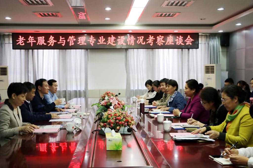 4月28日上午,省民政厅社会福利和慈善事业促进处副处长王善义,山东省教育科学研究院院长、教授申培轩,省民政厅机关党委副调研员吕静霞、社会福利和慈善事业促进处主任科员李海彦一行来我校考察老年服务与管理专业建设情况,学校校长范素华出席座谈会,招生就业处处长姚树欣、教务处副处长赵小敏、社会与法学院院长王蕾蕾以及老年服务与管理专业全体教师和部分学生代表参加座谈交流。