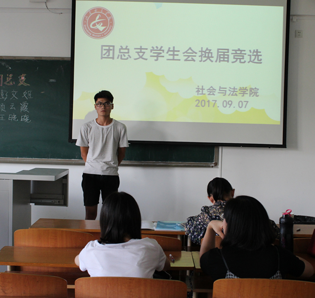 9月5日下午,社会与法学院在博学楼306、307举办了学生会换届竞选大会,社会与法学院老师、学生会主席团和部长团以及各部门竞选者参与了此次活动。