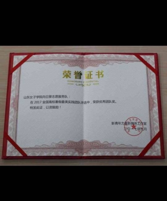 近日,社会与法学院“向日葵”志愿服务队在2017“全国高校暑期最美实践团队”评选活动中,荣获了由新青年力量新媒体工作室颁发的“优秀团队奖”。