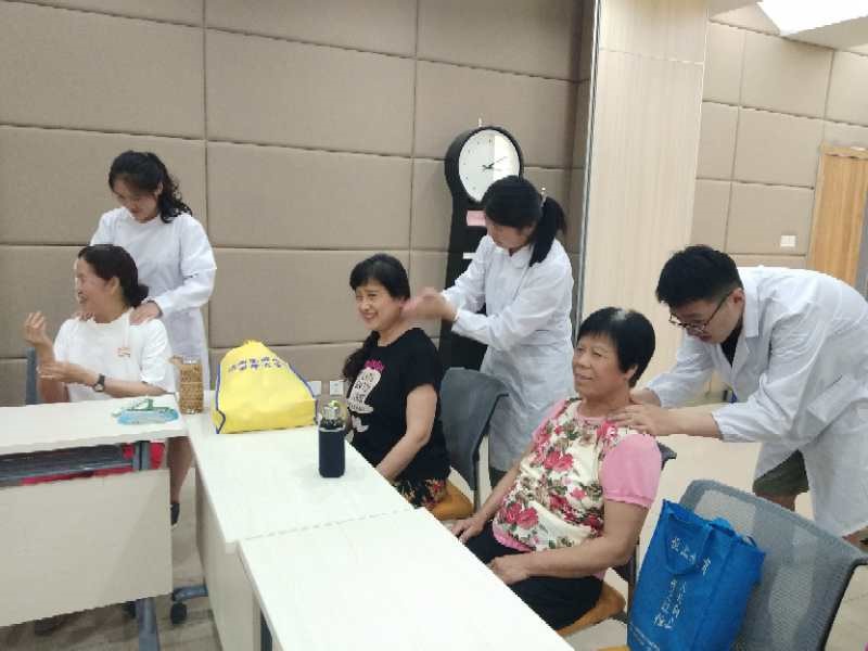活动伊始,王文文老师诚挚的感谢到场的老人并对志愿者们进行了简单的介绍。随后志愿者们结合实际案例,利用自己的专业知识,耐心的为老人进行保健按摩,并为部分老人艾灸。活动过程中,志愿者们不但指导老人学会找常用保健养生穴位,还讲解了这些穴位的按摩技巧。此外,队员们还宣传了夏季艾灸的好处,并给老人免费发放艾条。最终,志愿者专业的能力和认真负责的态度得到了老人们的一致好评。活动结束后,老人们纷纷表示会将学到的知识运用到日常生活中去,并表示随时欢迎同学们再次到来。此次活动在其乐融融的氛围中圆满结束。