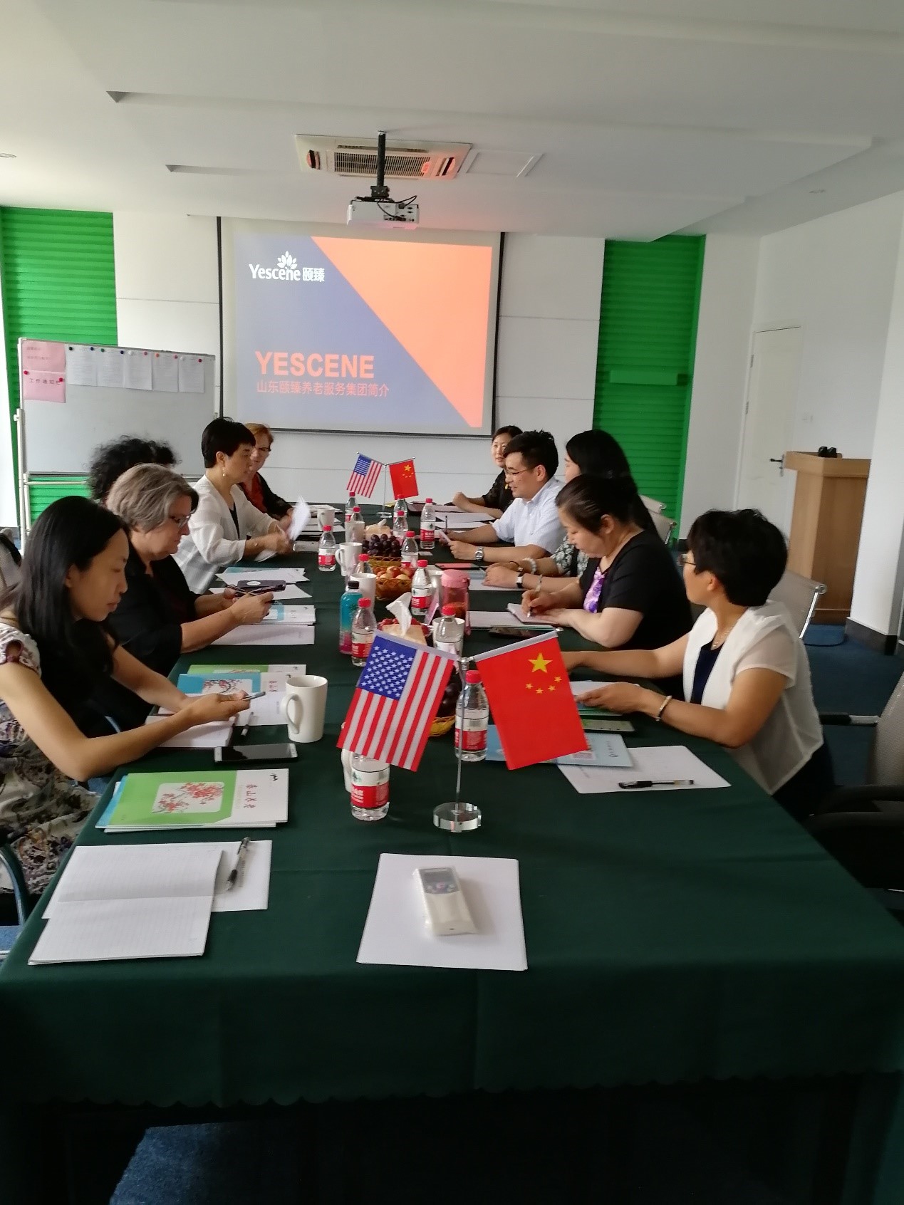 为深入交流人才培养经验,进一步加快专业建设,与国外一流高校建立联系,2019年6月26日下午,我校合作企业——山东颐臻养老服务集团举办的中美养老人才教育培训合作交流会在高新区迪亚创业基地举行。本次会议由上海颐臻管理咨询有限公司负责人赵军主持。美国AASCU大学协会国际项目负责人Sufei Li,圣克劳德州立大学孔子学院主任Kathryn Johnson、老年学系主任Phyliss Greenberg教授、Amy Knopf助理教授,山东女子学院、山东商业职业技术学院、山东青年政治学院等省内高校专业负责人参加座谈。老年服务与管理专业金莉、陈姝君、薛娇美等一行三人参加会议。