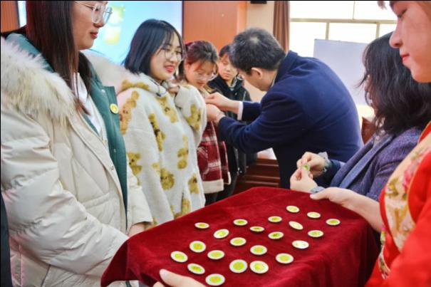 随后,杨德苑和闫小红共同为订单班学生颁发“融创隆海订单班”徽章,标志着同学们正式成为订单班的一员,并为订单班学生送上了定制生日礼物。