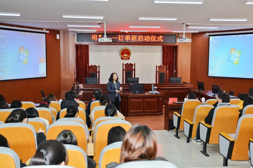 在开班仪式上,社会与法学院院长闫小红首先对公司领导们的到来表示欢迎,肯定了公司在康养行业作出的努力,对今后订单班的深入开展、推动“校企合作、产学结合”向更高层次发展表示出充分的信心。杨德苑为2019级、2020级全体订单班学生做开班致辞,对订单班同学提出了殷切希望。