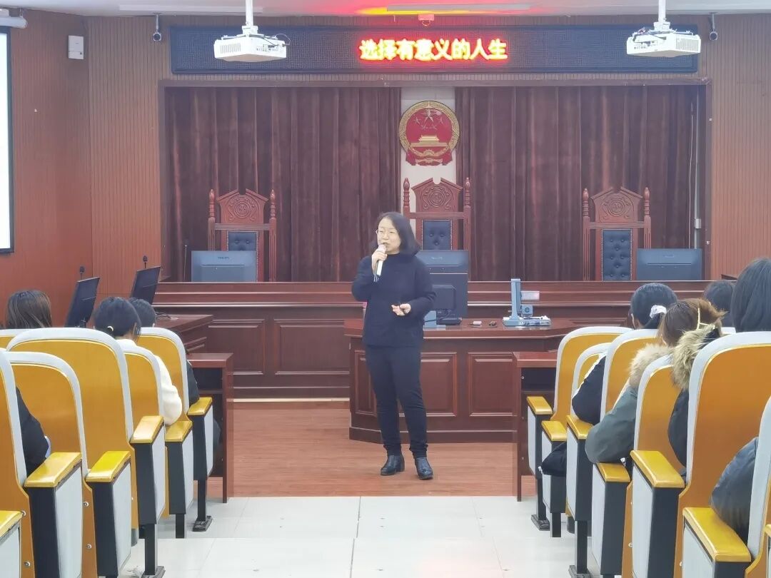 第一期由社会与法学院党总支副书记吴玉霞主讲,主题:新时代大学生法律素养养成。吴书记为大家解读了新时代,引导大家思考新时代的大学生该如何自我发展,从认知维度:掌握基础的法律知识,理念维度:具备良好的法治意识,能力维度:运用法律解决问题的能力,情感维度:树立坚定的法律信仰四个方面讲解了如何养成良好的法律素养。最后吴书记向大家推荐了余定宇的《寻找法律的印迹》,通过一个个历史故事告诉我们法律究其根源是捍卫权力的坚决,是追求正义公平的坚定,更是一种人道主义的关怀。