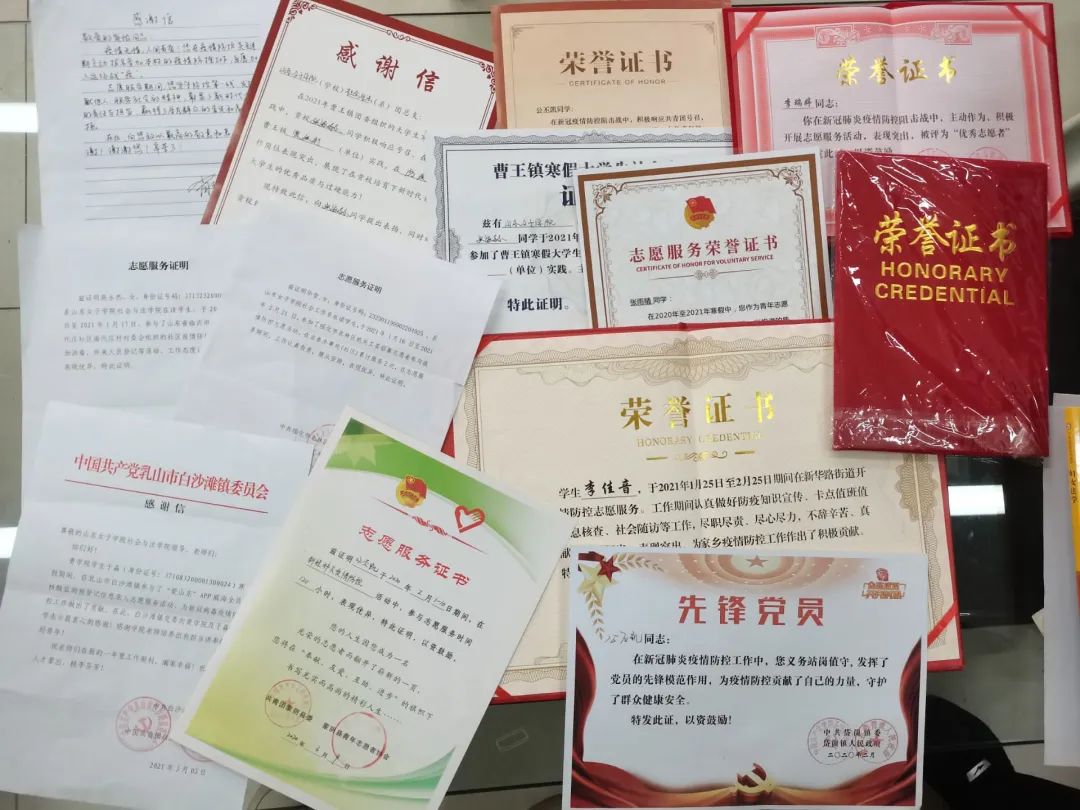 本学期开学以来,社会与法学院学子收获了一封封暖心的感谢信。2020级健康服务与管理专业张家赫、于淼,2019级知识产权专业马文博,2018级社会工作专业肖怡等十余名同学收到来自当地市县团委颁发的证书和表扬信19件,多名同学被授予“优秀志愿者”称号。
